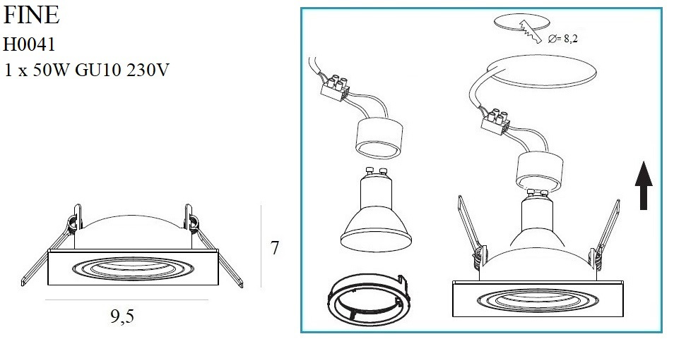 - Moc/Power: 1 x 50W GU10 230V