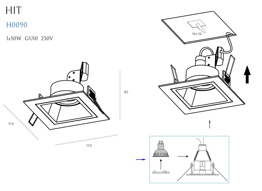 - Moc/Power: 1 x 50W GU10 230V