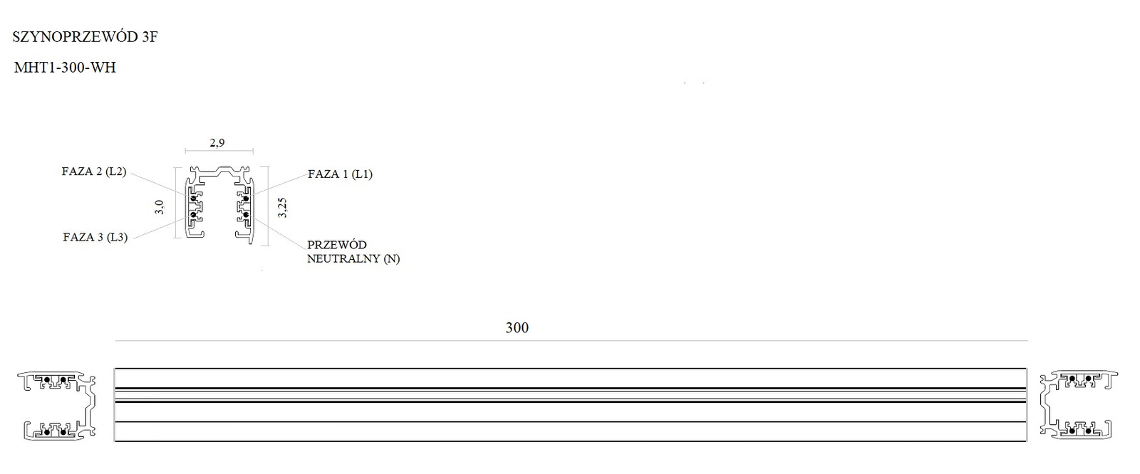 - Szyna aluminiowa trójfazowa wykonana z profilu aluminiowego lakierowanego na biało L: 300 cm