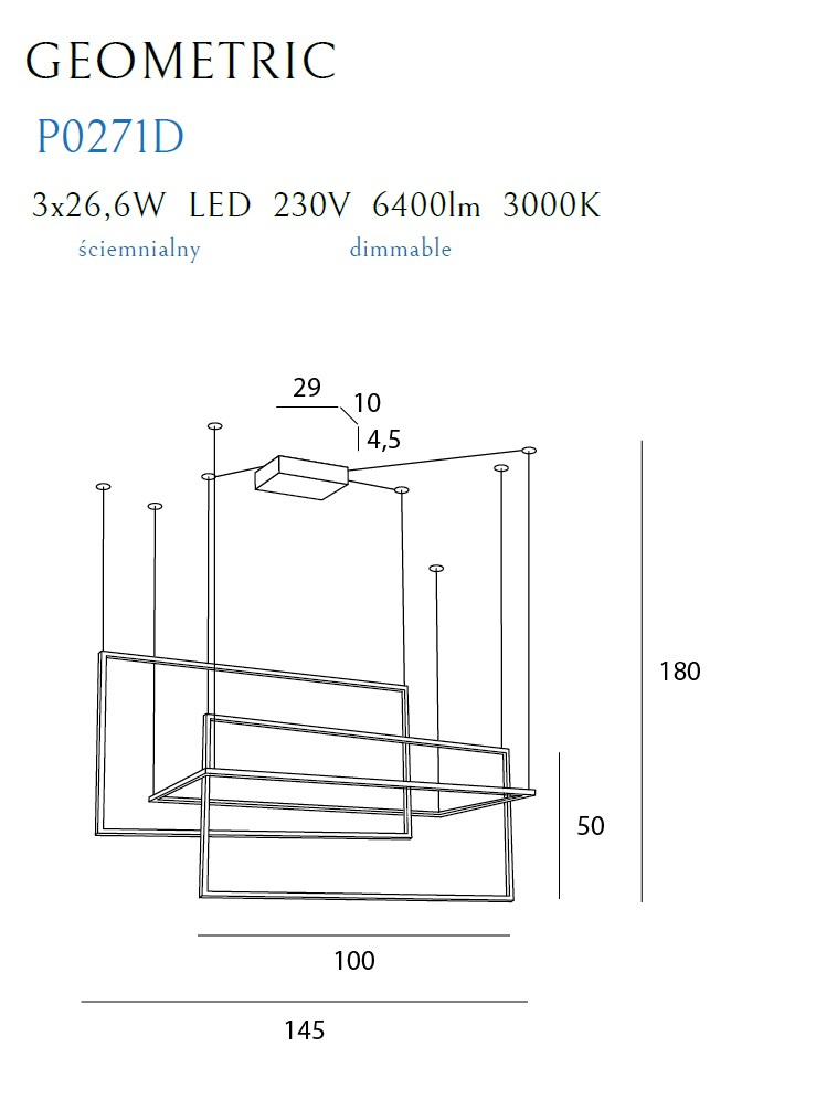 - Moc/Power: 3 x 26,6W LED 230V, 6400 LM