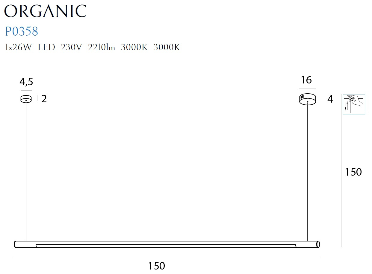 MAXLIGHT P0358 LAMPA WISZĄCA ORGANIC HORIZON 150CM CZARNA