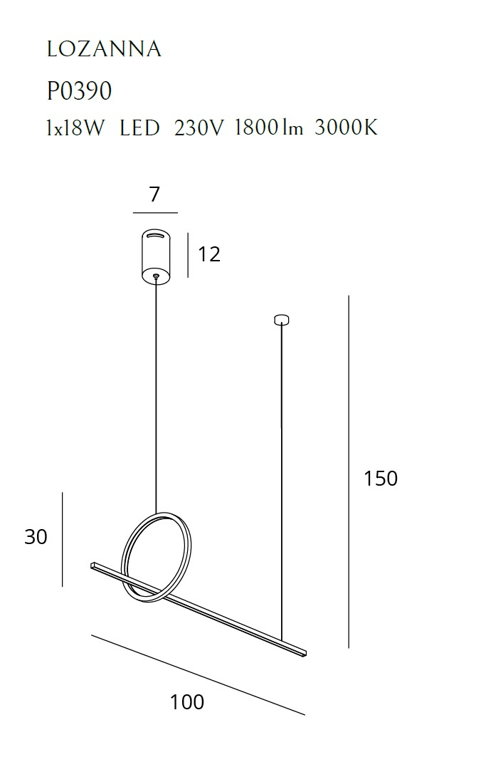 - Moc/Power: 1 x 18W LED 230V, 1800 LM, CRI90 3000K