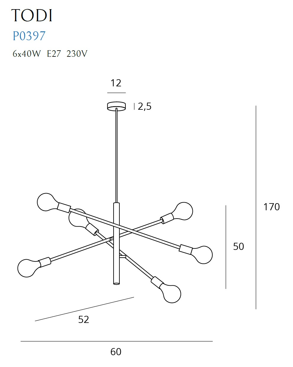 - Moc/Power: 6 x 40W E27 230V