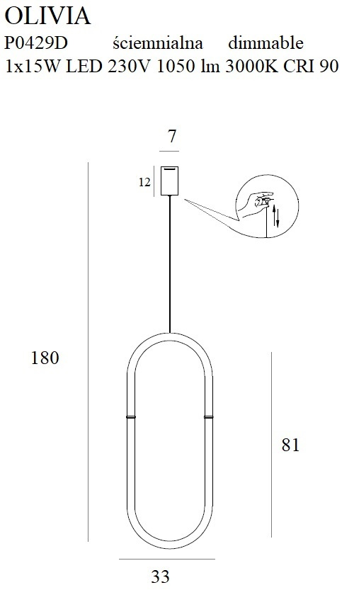 - Moc/Power: 1 x 15 W LED 230V, 1050 LM, CRI 90, 3000K