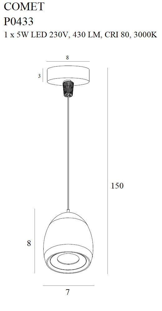 - Moc/Power: 1 x 5W LED 230V, 430 LM, CRI 80, 3000K