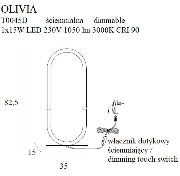 - Moc/Power: 1 x 15 W LED 230V, 1050 LM, CRI 90, 3000K