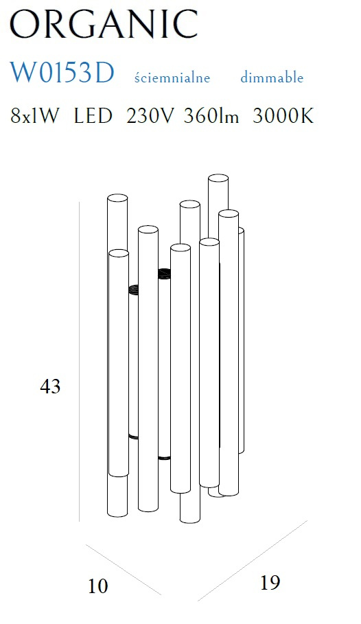 - Moc/Power: 8 x 1W LED 230V 360 LM, CRI90 3000K