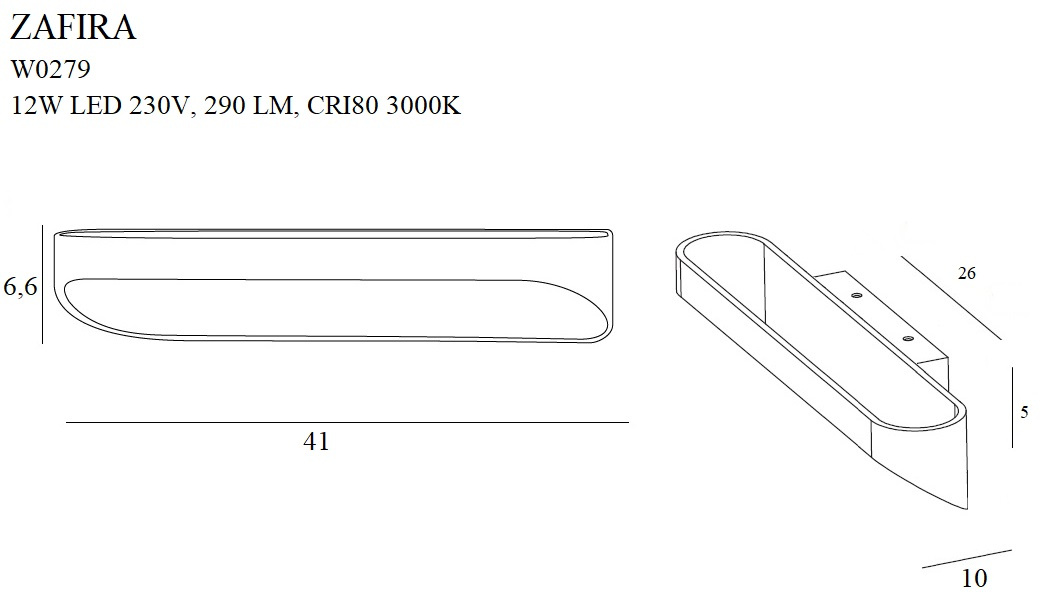 • Moc/Power: 12W LED 230V 480 LM, CRI80 3000K