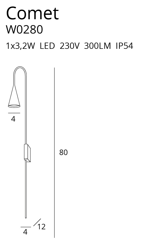 - W: 4 cm, D: 12 cm, H: 80 cm,