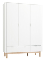 Wytworna szafa trzydrzwiowa z linii Miloo charakteryzuje się zaawansowanym systemem cichego zamykania. Wnętrze oferuje trzy półki oraz drążek do wieszania ubrań przez szerokość dwóch drzwi, oraz 3 półki przez szerokość jednych drzwi. Do szafy nie można dokupić dodatkowych półek. Szafa można zmontować w wersji lewej lub prawej (węższa część szafy po lewej lub po prawej stronie)