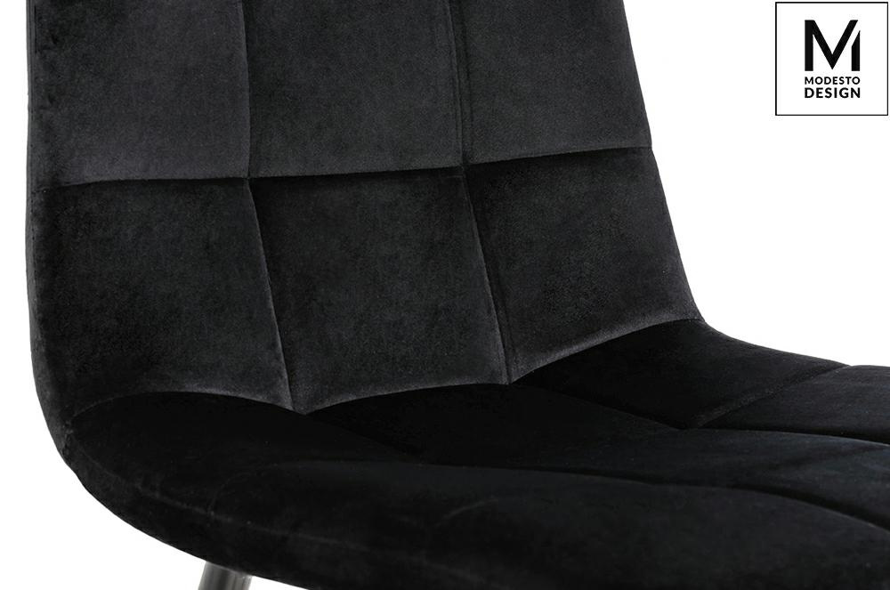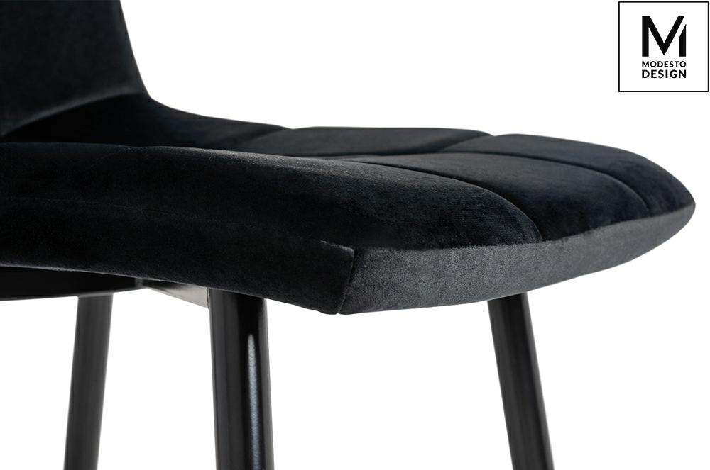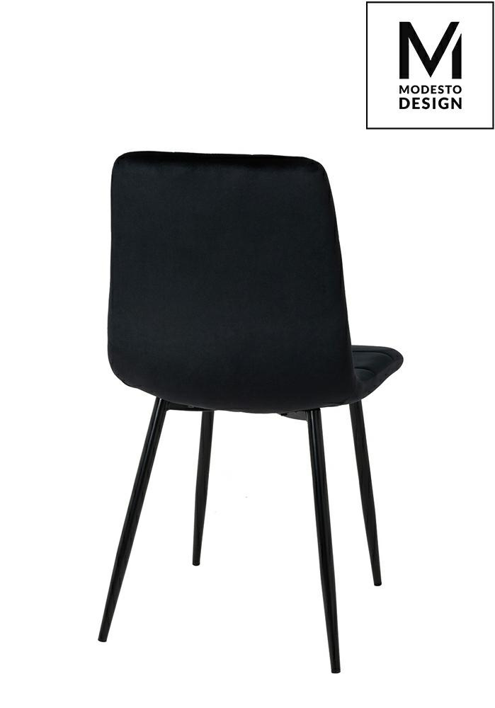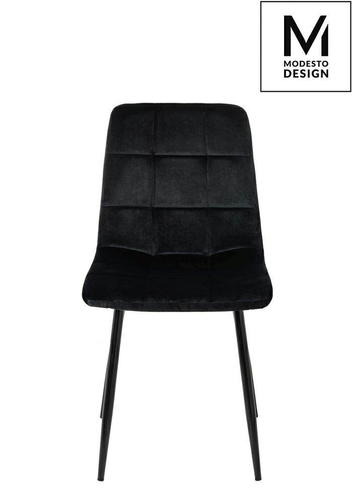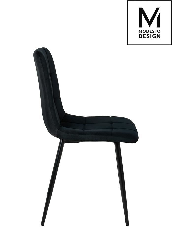 - Krzesło CARLO w kolorze czarnym od MODESTO DESIGN. Prosta i funkcjonalna forma, łącząca w sobie modną pikowaną tkaninę i metalowe nogi. Wyprofilowane oparcie i miękkie siedzisko zapewniają komfortowe użytkowanie. Całość tapicerowana jest modnym i przyjemn