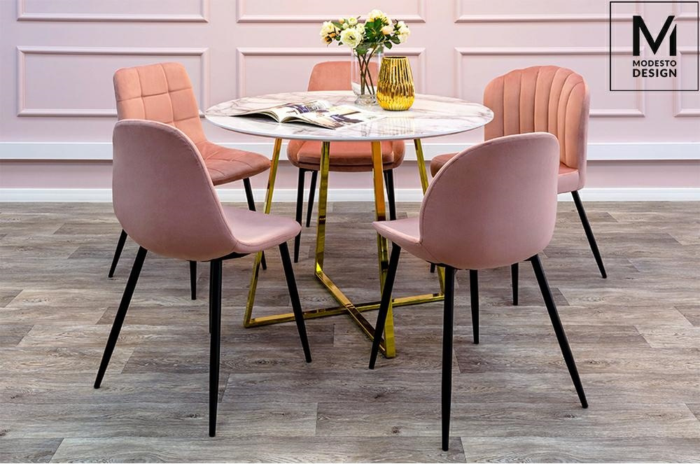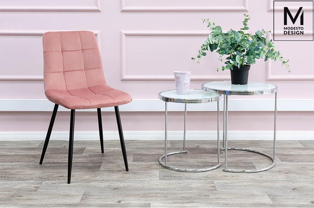 MODESTO krzesło CARLO pudrowy róż - welur, metal