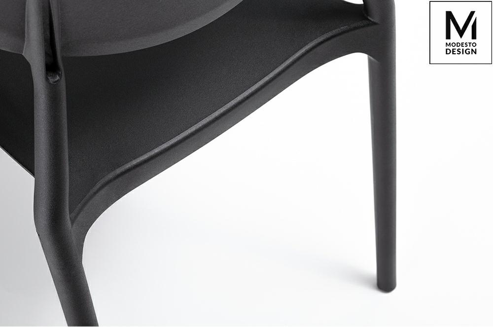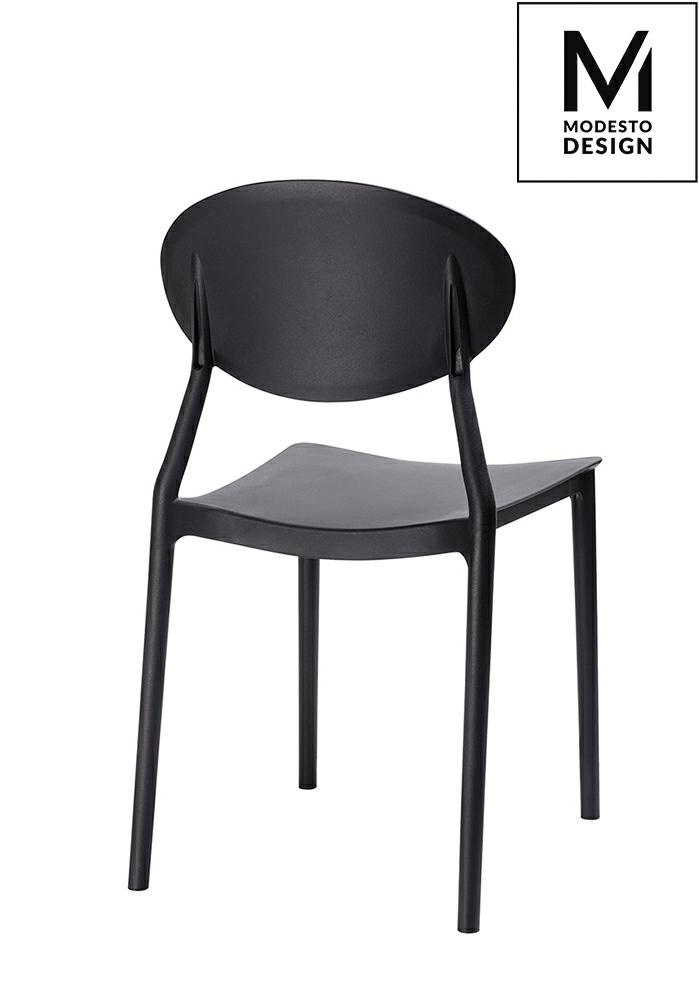 - Krzesło FLEX marki MODESTO DESIGN Flex wykonane zostało w całości z polipropylenu w kolorze czarnym, matowym. Doskonale sprawdzi się wewnątrz oraz na zewnątrz pomieszczeń. Krzesło można sztaplować(ustawiać jedno na drugim) co ułatwia przechowywanie. Wymia