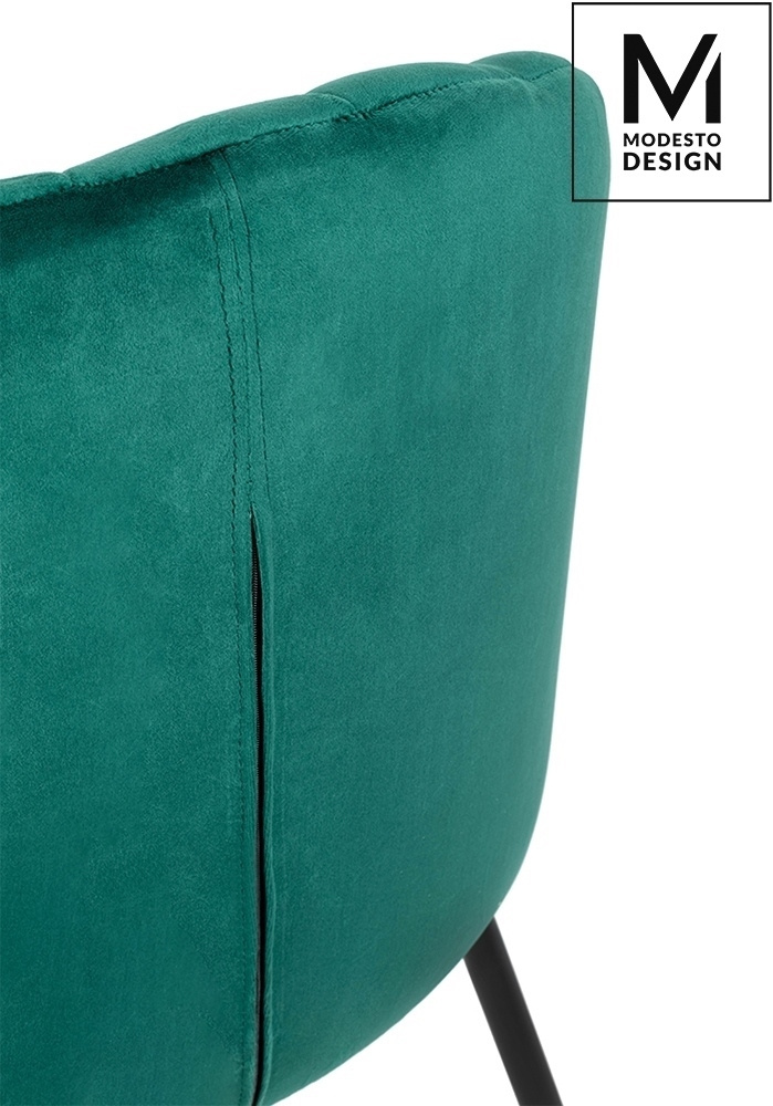 - Krzesło Rango od marki MODESTO DESIGN. Eleganckie tapicerowane krzesło Rango w stylu lat 50-tych do salonu lub jadalni. Krzesło jest obite tkaniną welurową. Na oparciu dodane jest ozdobne pikowanie w formie biegnących pionowo szwów. Uzupełnieniem całości