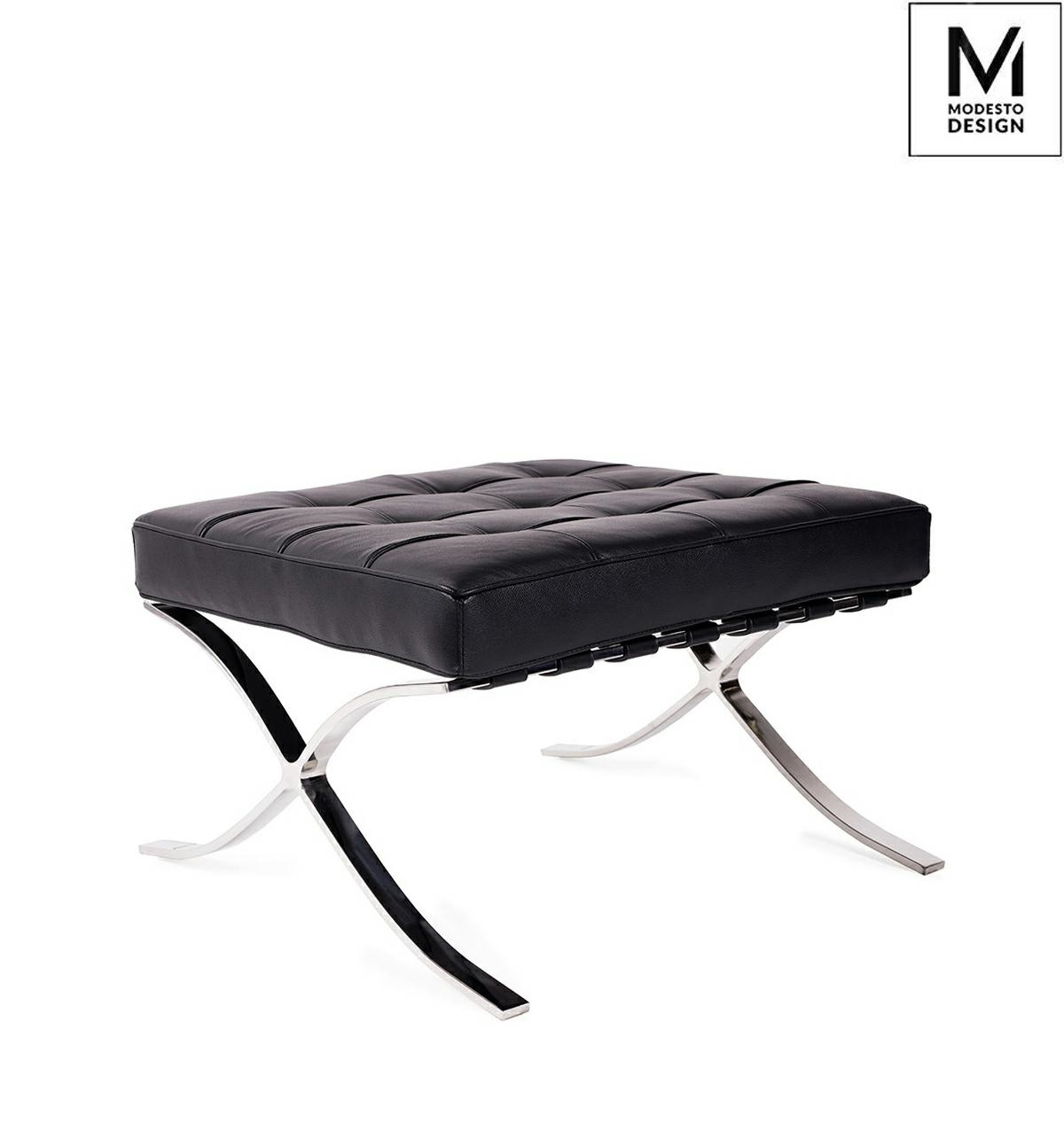- Podnóżek Barcelon marki Modesto Design można wykorzystać jako dodatek do sofy i fotela z tej samej serii lub jako osobne wygodne siedzisko. Część przeznaczona do siedzenia lub oparcia nóg wykonana jest z ekoskóry w kolorze czarnym. Podnóżek ma 61 cm szero