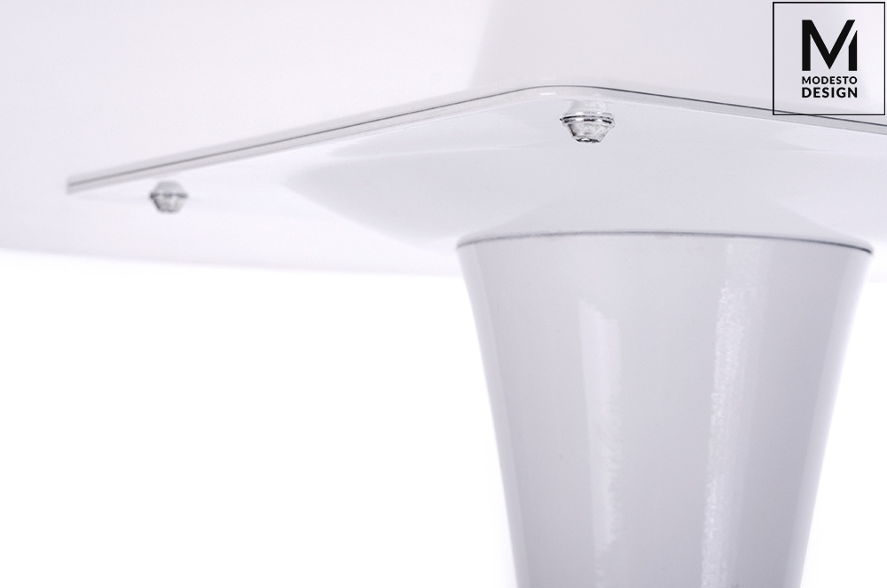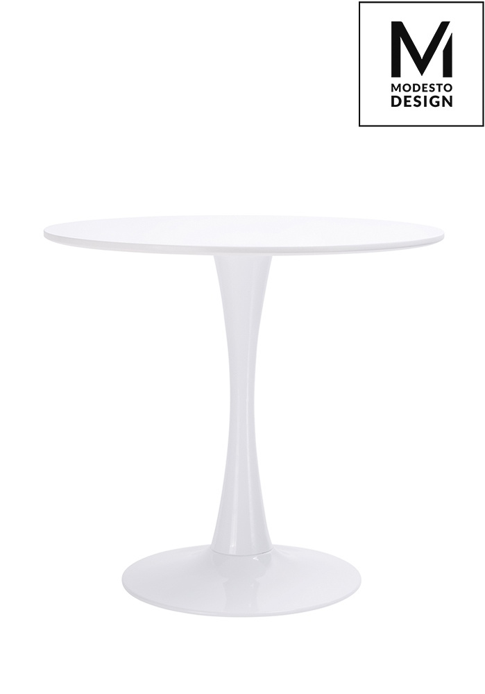 - Stół TULPI FI 80 marki MODESTO DESIGN. Blat wykonany z MDF-u w kolorze białym półmat. Podstawa z metalu, lakierowana proszkowo na kolor biały - połysk. Wymiary: wys. 74 cm / szer. 80 cm / gł. 80 cm Blat: śr. 80 cm / gr. 18 mm Podstawa: śr. 50 cm Waga nett