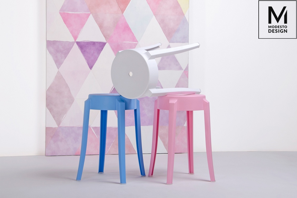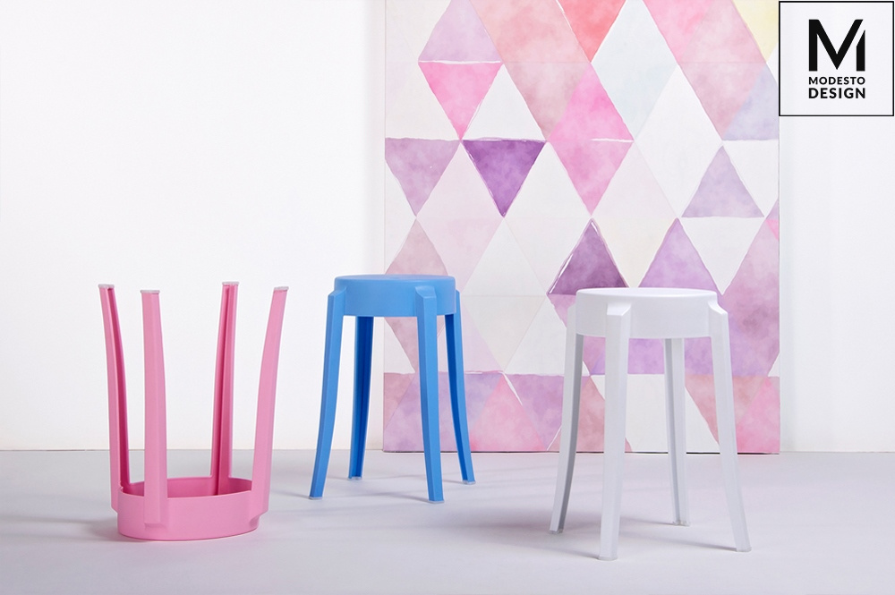 - Stołek CALMAR 46 marki MODESTO DESIGN. Stołek w całości wykonany jest z polipropylenu w kolorze białym matowym. Wymiary: wys. 46,5 cm / szer. 39 cm / gł. 39 cm Wysokość do krawędzi siedziska: 46 cm Siedzisko: szer. 26,5 cm / gł. 26,5 Rozstaw nóg: szer. 50