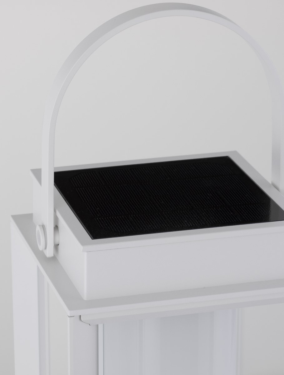 - MONTERREY biały. Przenośna lampa solarna z możliwością ładowania telefonu za pomocą kabla USB.
