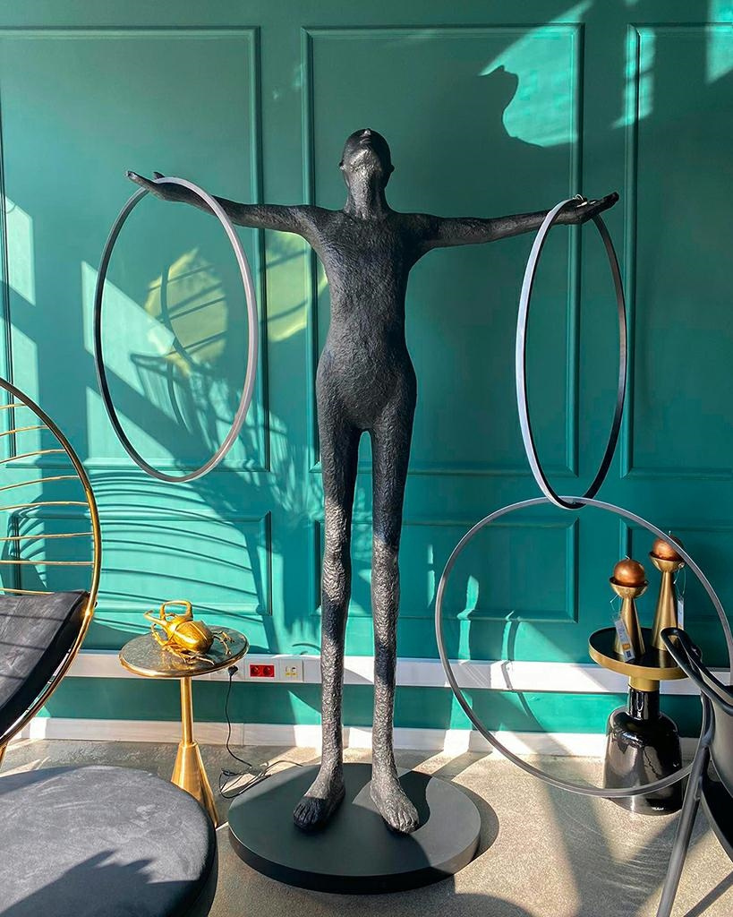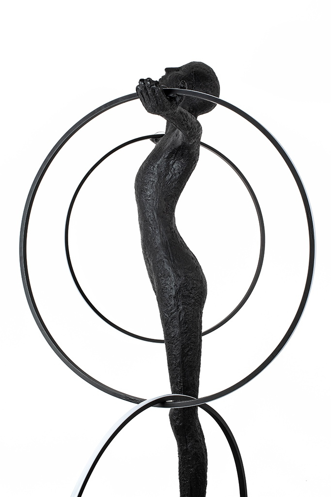 • MOOSEE lampa podłogowa HUMAN CIRCULO. Wykonana z włókna szklanego, stali oraz aluminium. Nietypowy motyw człowieka utrzymującego trzy ledowe okręgi. Zaplecione obręcze oświetlają postać, co zwraca na nią szczególną uwagę. Z powodzeniem wzbudzi zainteresow
