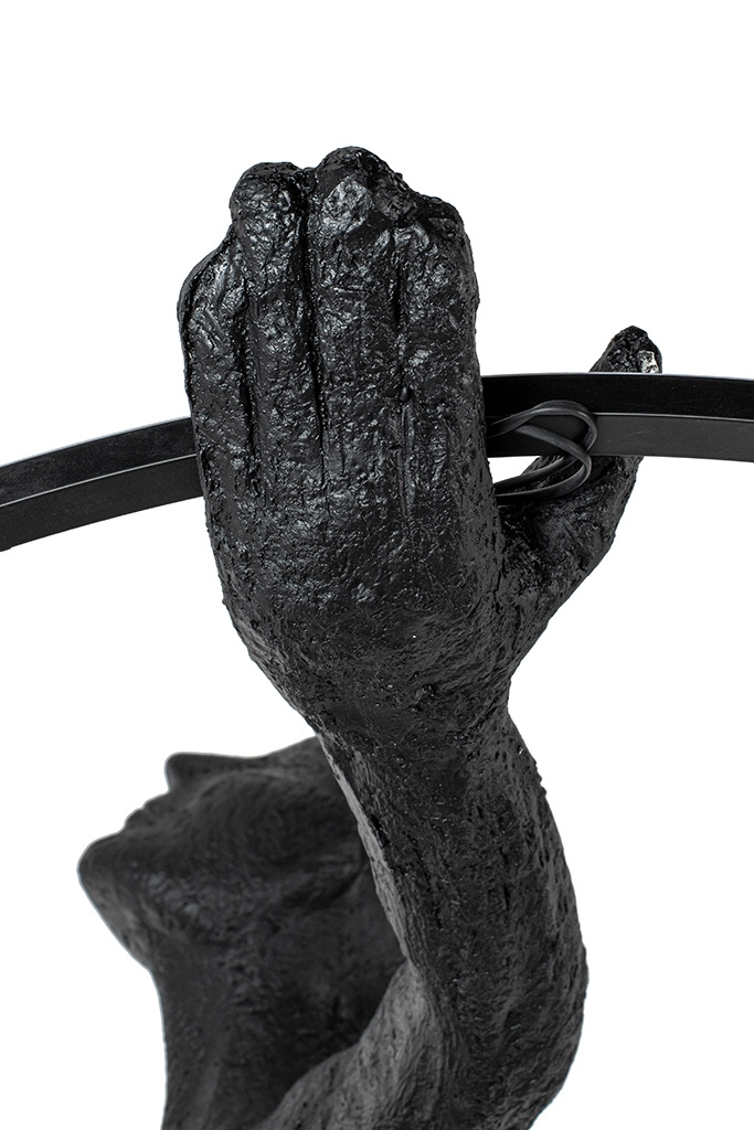 MOOSEE lampa podłogowa HUMAN CIRCULO. Wykonana z włókna szklanego, stali oraz aluminium. Nietypowy motyw człowieka utrzymującego trzy ledowe okręgi. Zaplecione obręcze oświetlają postać, co zwraca na nią szczególną uwagę. Z powodzeniem wzbudzi zainteresowanie nie tylko miłośników designu. Światło: LED 140 W / 11200 lm / 3000 K Oprawa: wys. 223,50 cm / szer. 147 cm / gł. 90,5 cm Podstawa: szer. 80 cm / wys. 5 cm / gł. 58 cm Okrąg: szer. 2,3 cm / gr. 1,5 cm / śr. 90,5 cm Human: wys. 208 cm / szer. 147 cm / gł. 38 cm Przewód: 270 cm Przycisk: śr. 7 cm Sposób wysyłki: paleta.