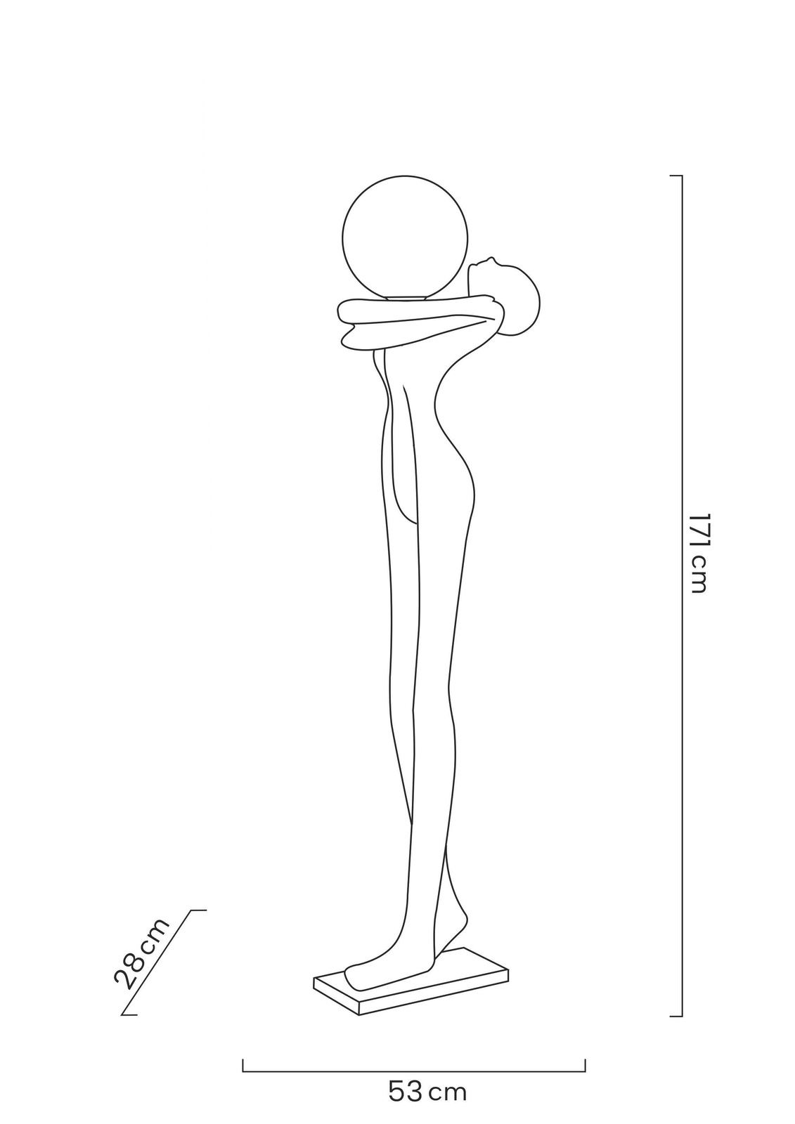 - MOOSEE lampa podłogowa HUMAN MOON. Efektowna, oryginalna oprawa oświetleniowa, która będzie dziełem sztuki w Twoim domu. Główną rolę gra tu elegancka kobieta opierająca białą kulę na swoich dłoniach. Piękny, kobiecy kształt wykonano z włókna szklanego w k