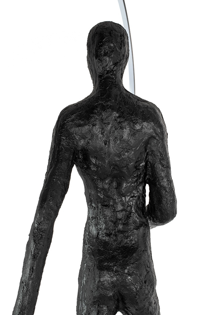 - MOOSEE lampa podłogowa HUMAN ROUND. Wykonana z włókna szklanego, stali oraz aluminium. Czarny kolor i sylwetka człowieka, tworzy nowoczesną dekorację niemal każdej przestrzeni. Obręcz skrywa ledowe źródło światła, oświetlając postać, zwraca na nią szczegó