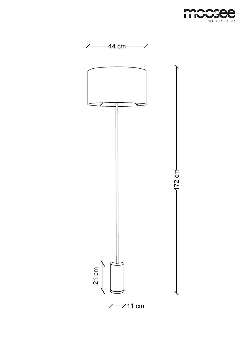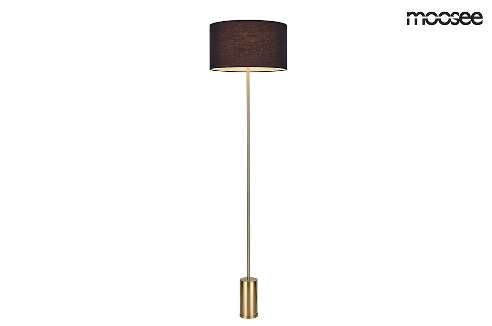 - Lampa podłogowa SANTORINI od marki MOOSEE. Klasyczna lampa wykonana z połączenia szczotkowanej stali nierdzewnej w złotym kolorze i materiałowego klosza. Klosz z białą, rozpraszającą światło membraną, umieszczono na złotym stelażu. Całość została umieszcz