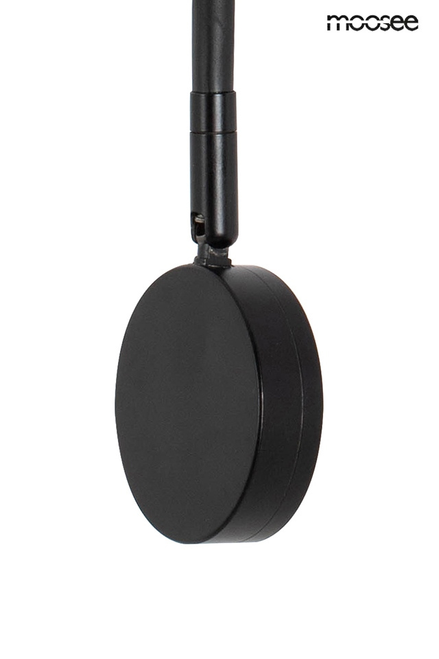 - MOOSEE lampa ścienna AXEL czarna. Fantastyczny, wielofunkcyjny kinkiet w nowoczesnej formie. Całość wykonano w wyniku połączenia stali oraz szkła w czarnej kolorystyce. Głównym atutem jest ruchomy, okrągły klosz o 360 stopni oraz możliwość regulacji góra,