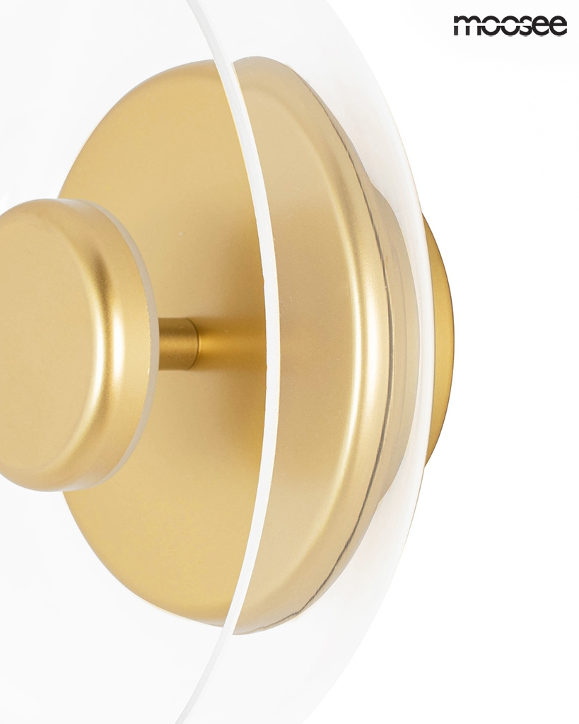 - MOOSEE lampa ścienna EDEN WALL złota. Stylowy szklany klosz i metalowa montatura w kolorze złotym sprawiają, że oprawa świetnie sprawdzi się w nowoczesnym wnętrzu, lecz również może zostać ciekawym przełamaniem nieco bardziej surowych aranżacji. Źródło św
