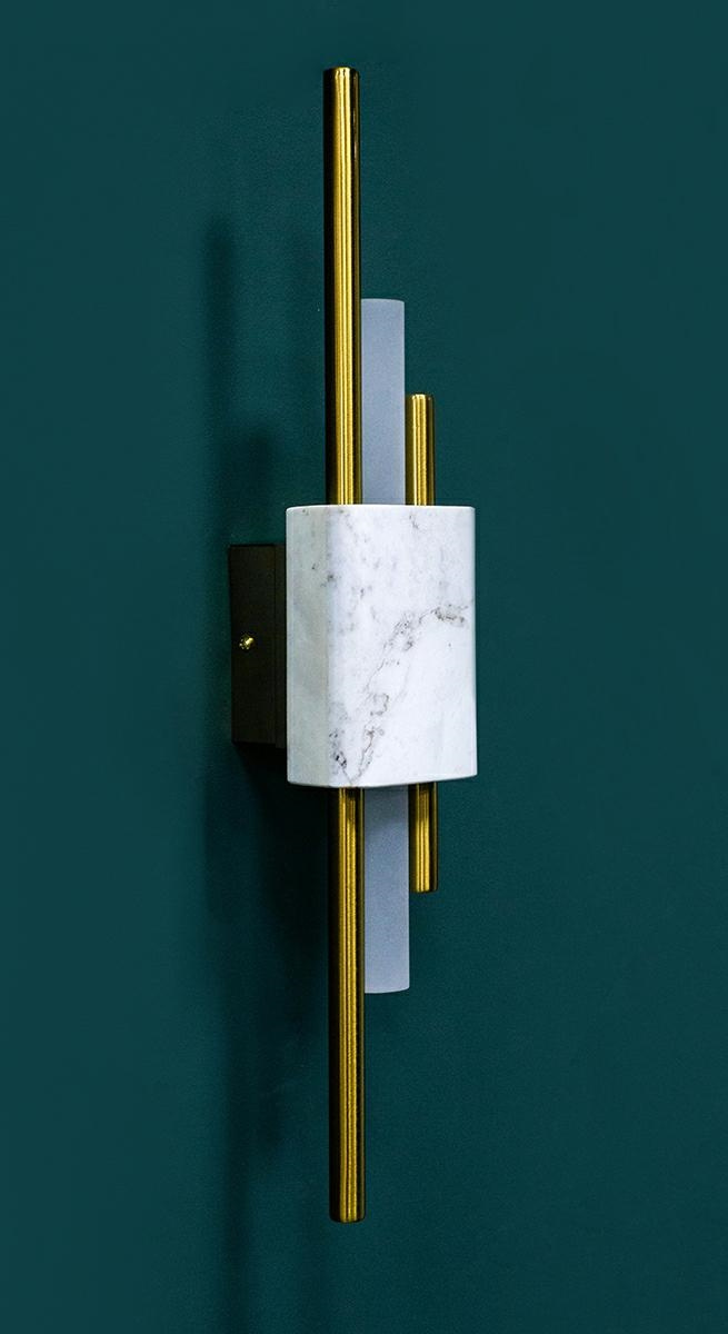 - MOOSEE lampa ścienna EVANS biała / złota. Kompozycja łącząca klasyczny design z nowoczesnością. Złote, podłużne elementy optycznie wydłużają kinkiet. Klosze wykonane z mrożonego szkła skrywają moduły LED o ciepłej barwie, a snop światła skierowany jest do