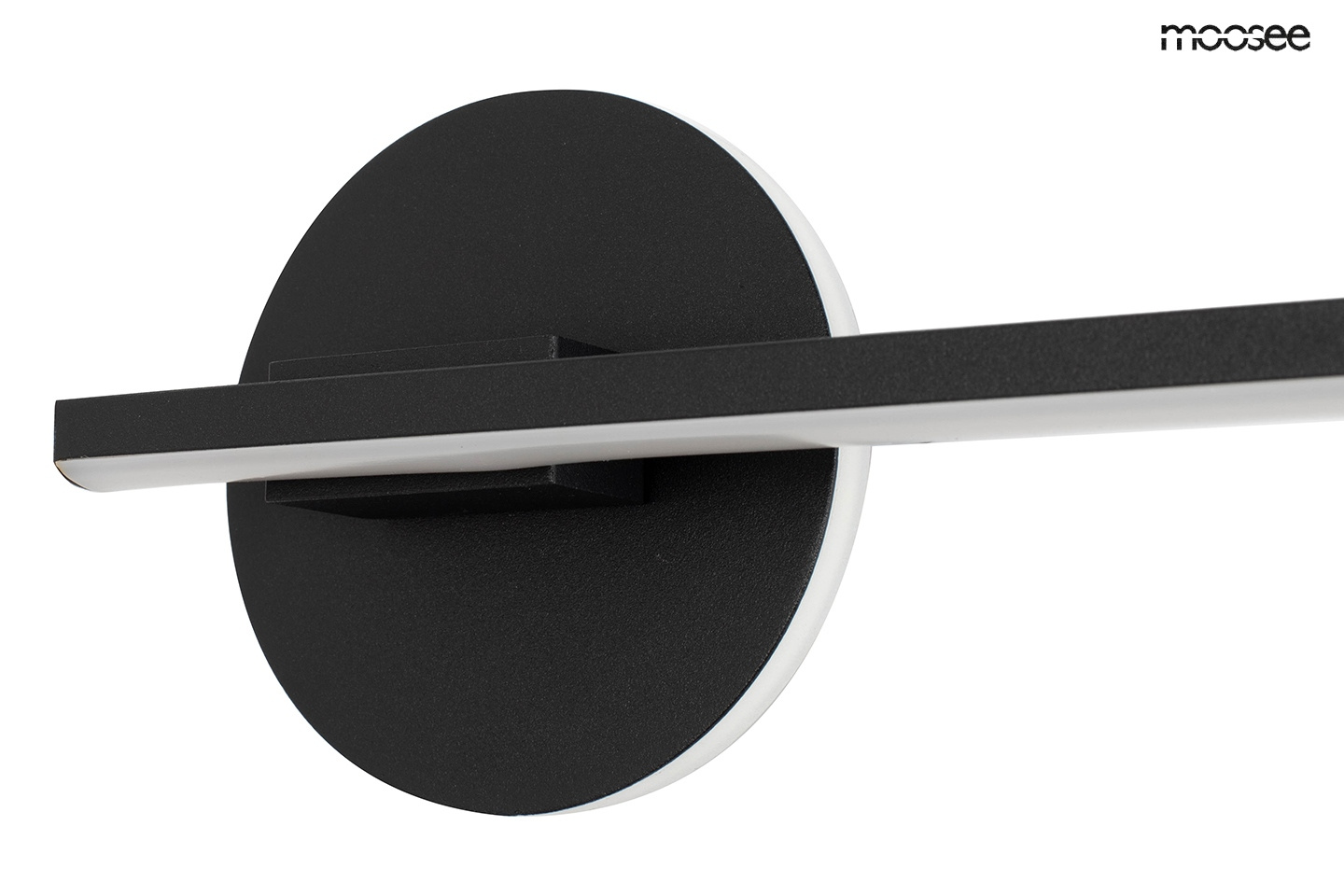- MOOSEE lampa ścienna HORIZON czarna. Prosty kształt i minimalizm skrywa niebanalny wzór padającego cienia. Ciekawy efekt świetlny powoduje zastosowanie światła również na okręgu montatury. Oprawa wykonana z połączenia metalu i aluminium w uniwersalnym, cz