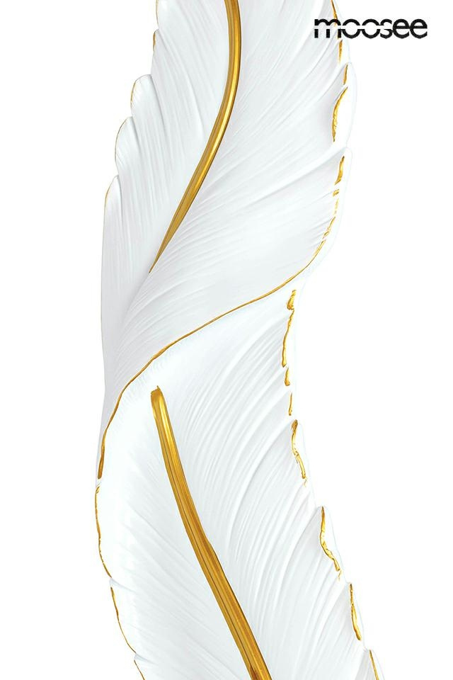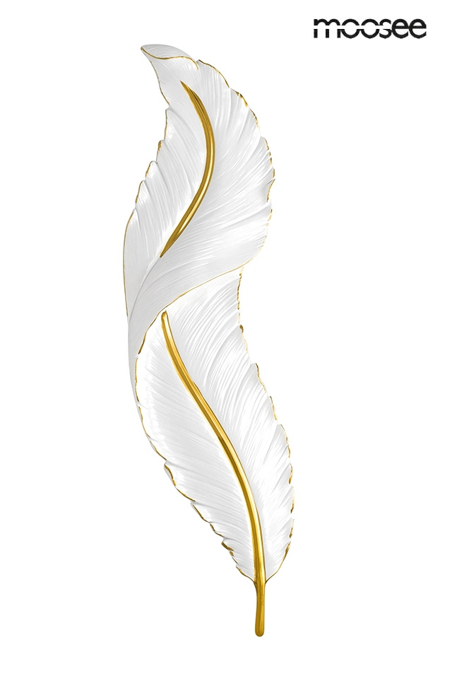 - MOOSEE lampa ścienna IKAR 80. Ten niezwykle efektowny kinkiet został zainspirowany opadającym lekkim piórem. Całość ręcznie stworzono z żywicy, dzięki czemu lampa Ikar wygląda bardzo realistycznie. Biało-złote wykończenie dodaje elegancji i klasy. Zarówno