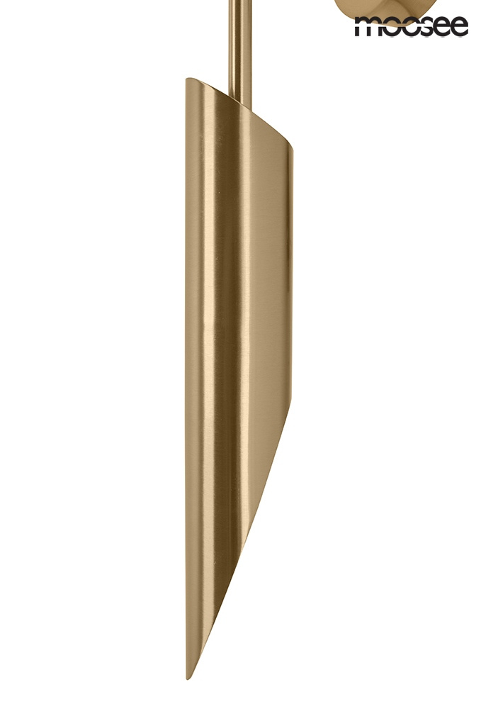 - MOOSEE lampa ścienna LOCCA złota. Wykonana w całości ze stali w kolorze złotym. Podłużne klosze z dwóch stron oprawy skrywają źródło światła. Elegancki kinkiet z pewnością odnajdzie się w nowoczesnych aranżacjach. Światło: 2 x G9 max. 40 W (brak w zestawi