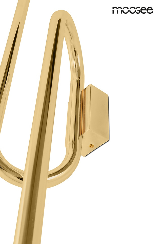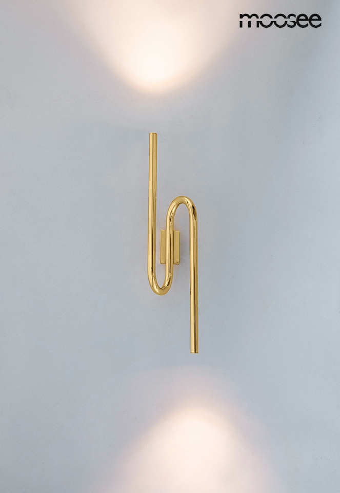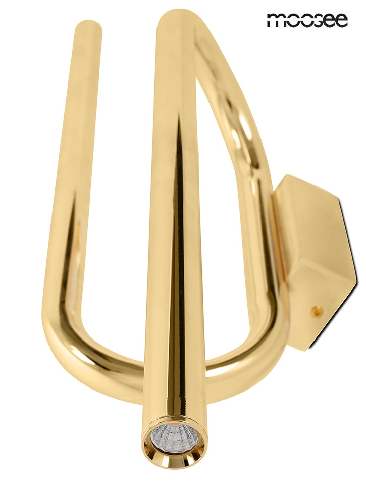 - MOOSEE lampa ścienna MACAROON złota. Nowoczesna oprawa ścienna o designerskim kształcie, rozpraszającym światło w górę, jak i w dół. Całość wykonano ze stali w eleganckim złotym kolorze. Macaroon idealnie odnajdzie się we współczesnych wnętrzach, dodatkow