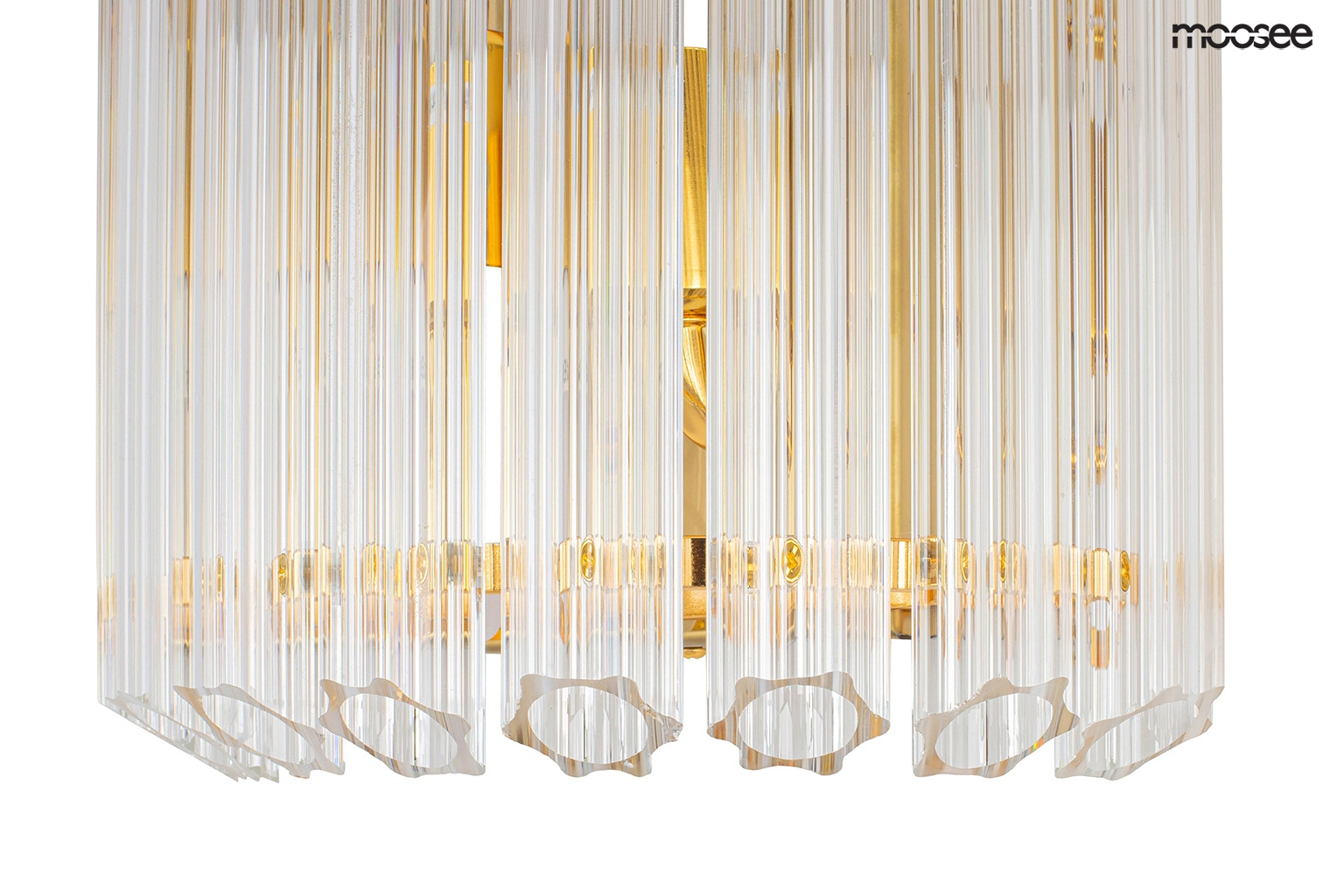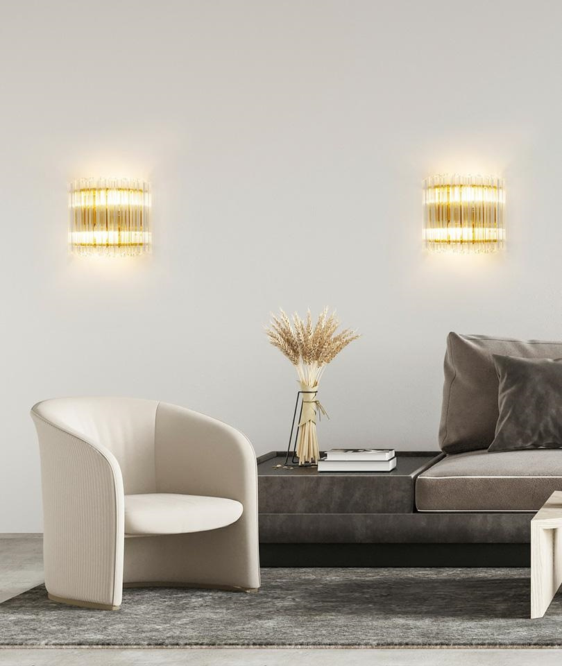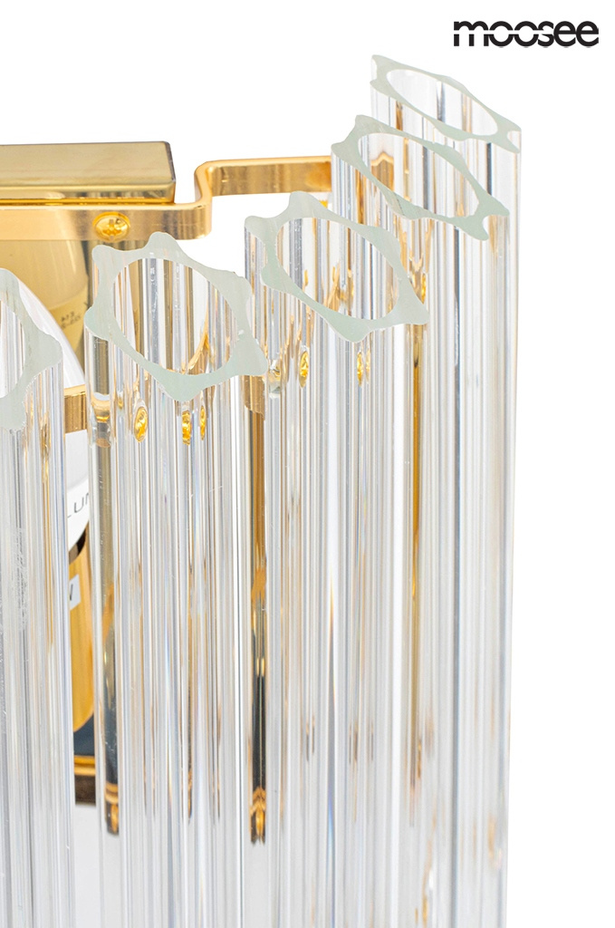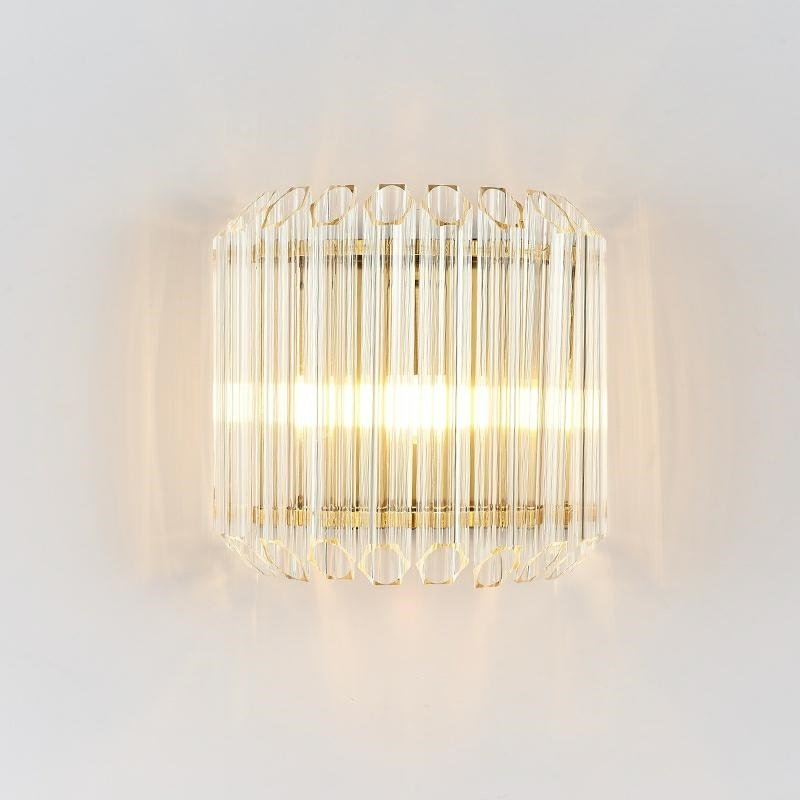 - Lampa ścienna PALACE złota Niezwykle elegancka oprawa, której głównym elementem są kryształowe klosze. Każdy z nich jest stylowo wykończony i zamontowany na metalowym stelażu w kolorze złotym, który przebija przez szkło, tworząc dekoracyjny efekt. Światło