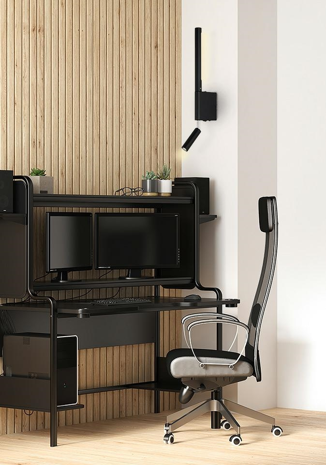 - MOOSEE lampa ścienna PERISCOPE czarna. Funkcjonalna, prosta forma minimalizmu zainspirowana peryskopem. Subtelna, metalowa lampa z dekoracyjnym, stałym oświetleniem oraz ruchomym reflektorem. Lampa pozwala na skierowanie światła pod pożądanym kątem. Moduł