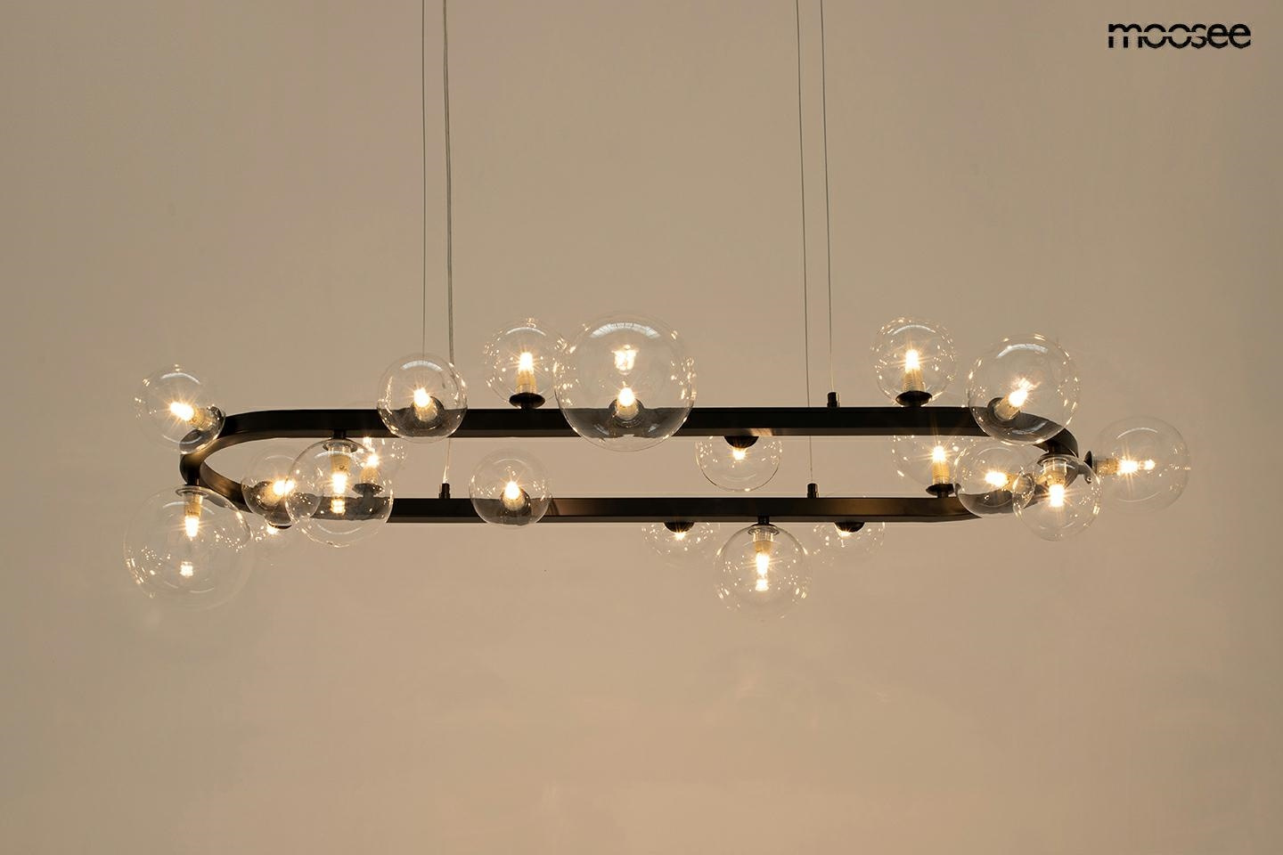 - MOOSEE lampa wisząca ALURE OVAL 120 czarna. Nowoczesna propozycja o wyjątkowo efektownej formie. Konstrukcja ze stali, na której rozmieszczono liczne szklane klosze w kształcie kul - ich przejrzysta forma sprawia, że światło rozprasza się subtelnie, tworz