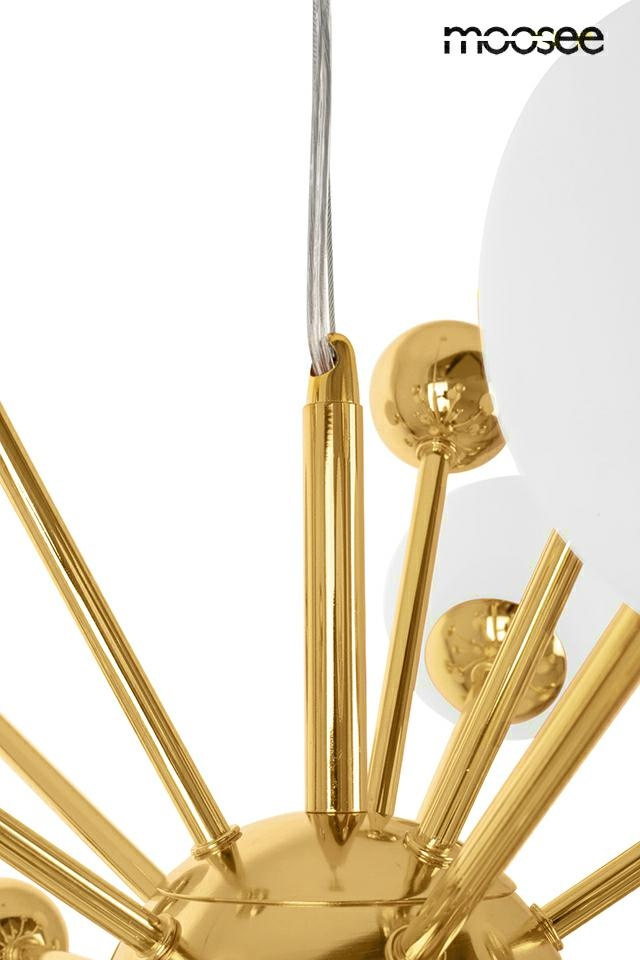 - MOOSEE lampa wisząca AURELIA złota. Elegancka oprawa w nowoczesnym stylu kształtem nawiązuje do galaktyki. Metalowa konstrukcja w kolorze złotym oraz szklane klosze tworzą wyjątkowy asymetryczny efekt. Aurelia oprócz praktycznego zastosowania stanie się r