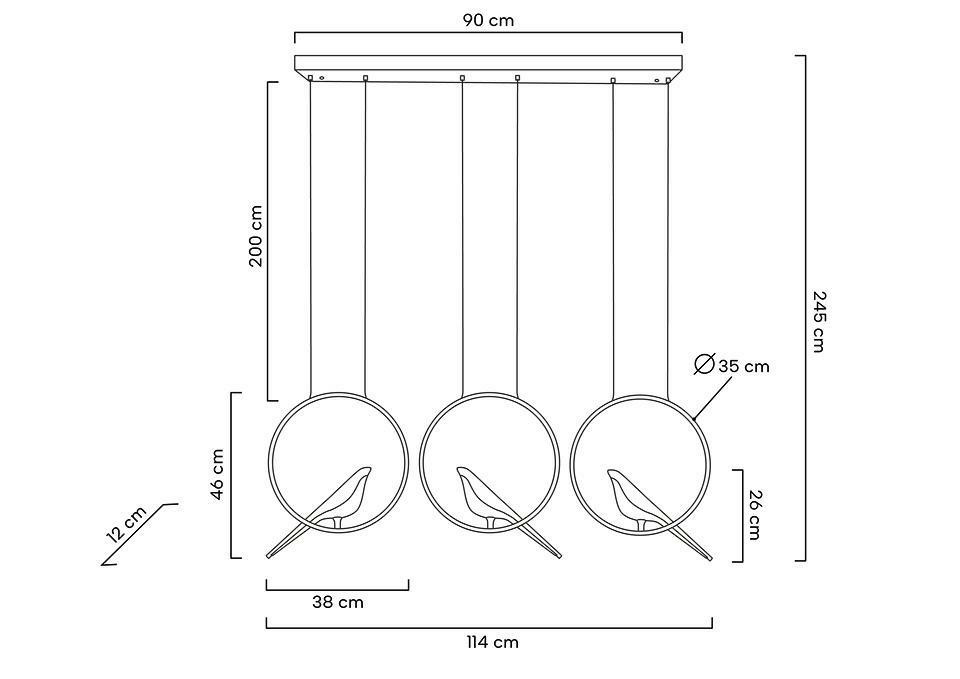 - MOOSEE lampa wisząca BIRD LINE złota. Designerski motyw lampy wykonany z połączenia akrylu i metalu w nowoczesnej kolorystyce. Kombinacja trzech biało-złotych ptaszków zawieszonych na złotym okręgu została zamocowana czarnym przewodem do podłużnej, metalo
