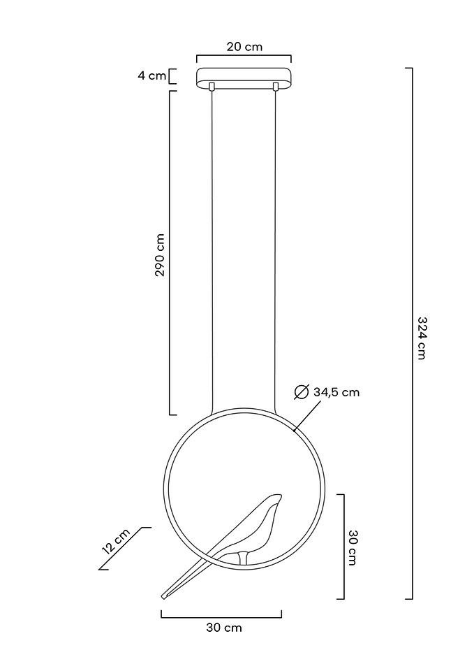 MOOSEE lampa wisząca BIRD złota. Designerski motyw lampy wykonany z połączenia akrylu i metalu w nowoczesnej kolorystyce. Biało-złoty ptaszek zawieszony na złotym okręgu został zamocowany czarnym przewodem do podłużnej, metalowej podsufitki w kolorze czarnym. Kolekcja Bird pozwala na stworzenie spójnych aranżacji, które pięknym akcentem udekorują każdą przestrzeń. Światło: LED 9 W / 720 lm / 3000 K Oprawa: wys. 324 cm / szer. 34,5 cm / gł. 12 cm Ptak: wys. 30 cm / szer. 9,5 / gł. 30 cm Okręg: śr. 35 cm Mocowanie: wys. 4 cm / szer.20 cm / gł. 5 Kabel: 290 cm Montaż: instalacja sufitowa Waga brutto: 1,1 kg Wymiary opakowania: 41 cm / 41 cm / 16 cm.