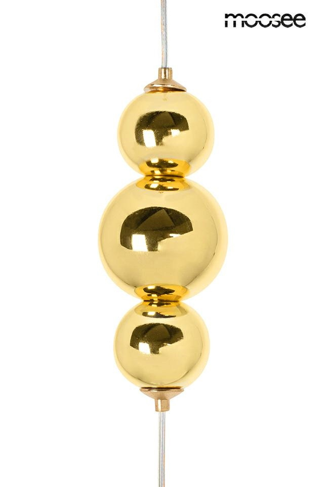 - MOOSEE lampa wisząca BUTTERFLY M złota. Designerski motyw lampy wykonany z aluminium w kolorze złotym z transparentnymi, kryształowymi skrzydłami. Na regulowanej lince mocującej znajduje się element dekoracyjny w kształcie kulek w kolorze podsufitki. Seri