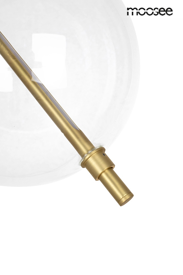 - MOOSEE lampa wisząca ECHO złota. Geometryczny kształt i nowoczesny design. Przezroczysty klosz o kształcie kuli wykonano ze szkła i oparto na metalowej konstrukcji w satynowym złotym kolorze. Echo to lampa o oryginalnym koncepcie, która z całą pewnością p