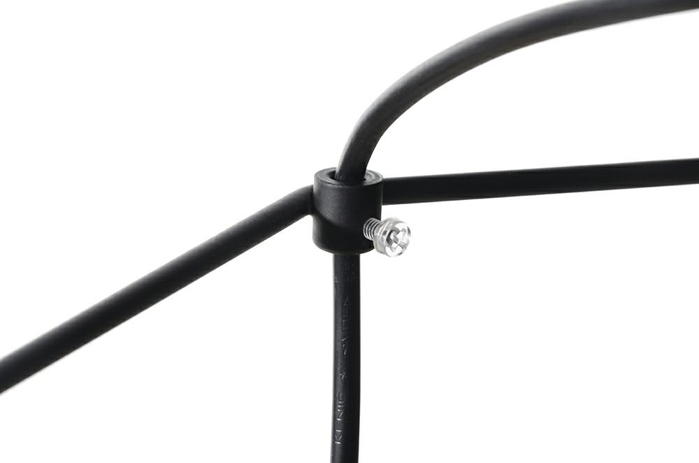 - Lampa FLUSSO 8 w kolorze czarnym, została wykonana z przewodów osadzonych na stalowych prętach, które poprzez zagięcia nadają oprawie wyjątkowy kształt. Metalowe klosze skrywające źródło światła wykończone są szkłem satynowym. Geometria w połączeniu z pro