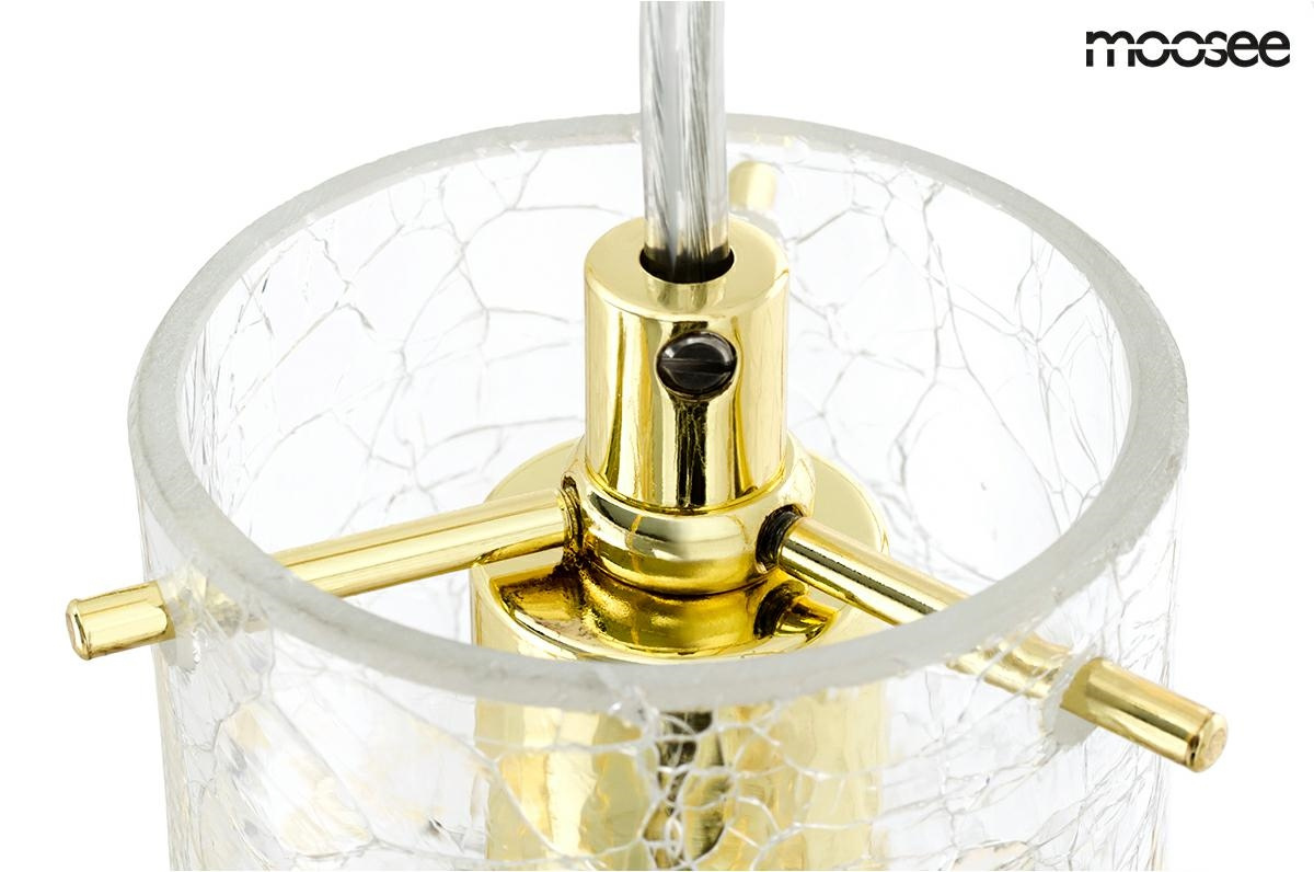 - Lampa wisząca HAVANA L od marki MOOSEE. Geometryczną konstrukcję wykonano z połączenia metalu w kolorze złotym i szklanego klosza. Klosz otoczony jest geometrycznym stelażem. Całość została umieszczona na złotej podsufitce, eleganckim łańcuszku i transpar