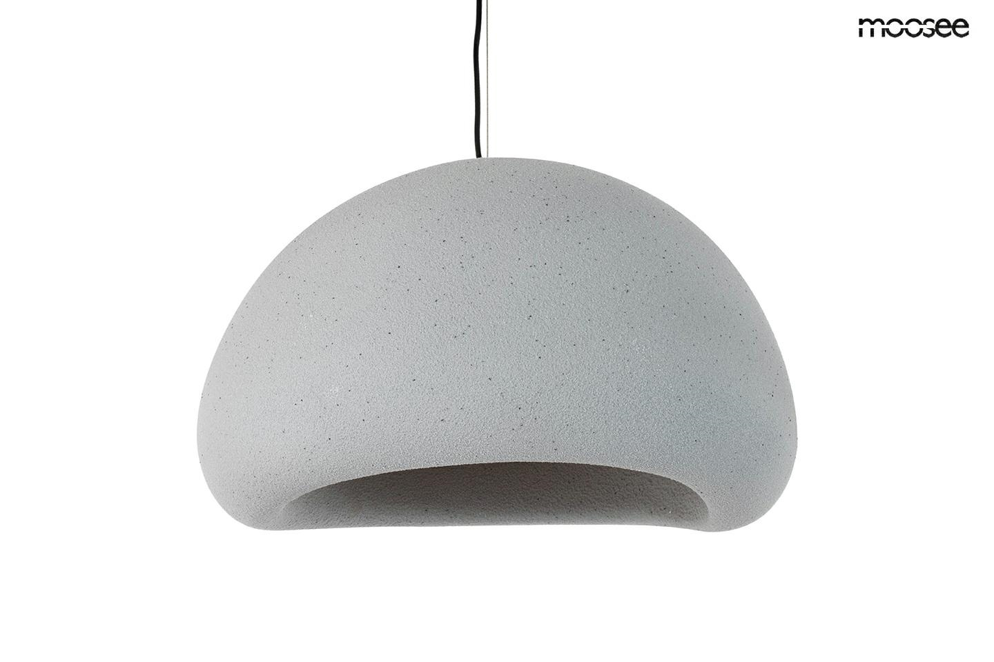 - MOOSEE lampa wisząca NEST 40 szara. Lampa inspirowana kulistym obłokiem, przeznaczona dla miłośników designu. Nieregularny kształt wykonany z żywicy swoją strukturą przypomina kamień. Zawieszona na czarnym przewodzie, unosząc się, wprowadza w melancholijn