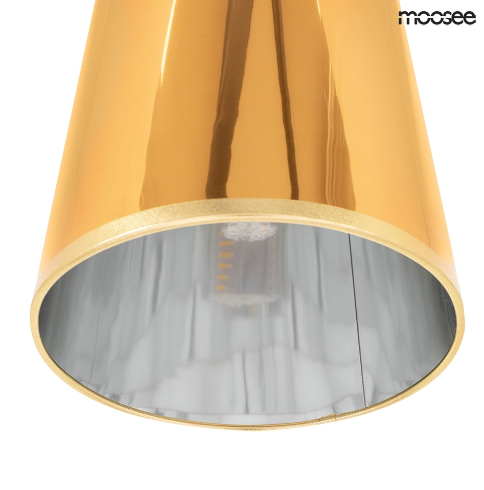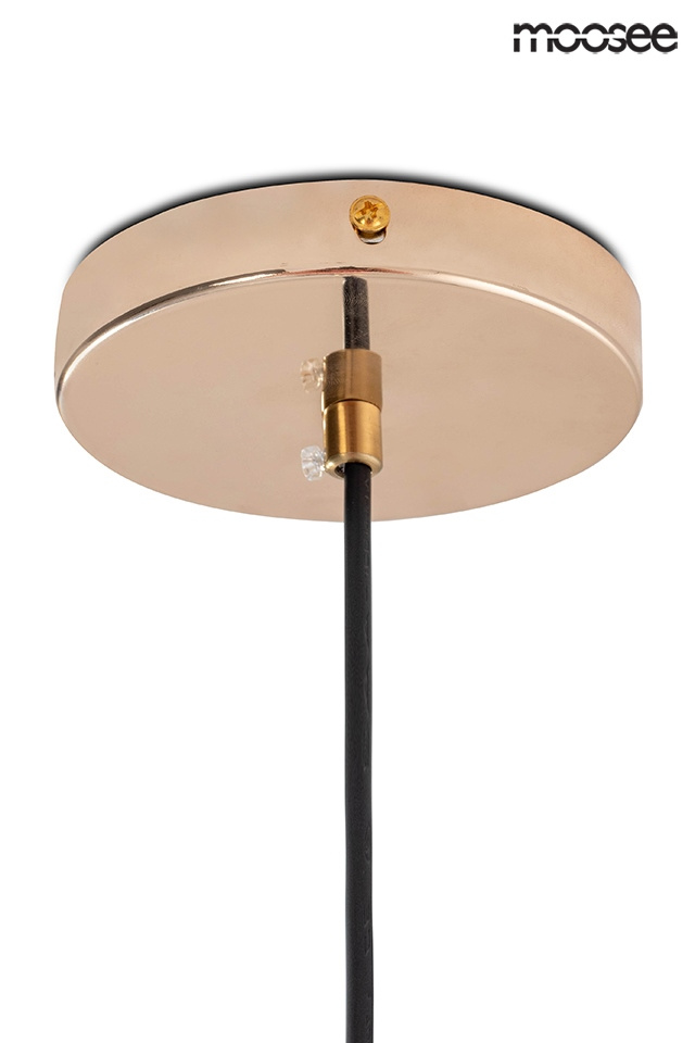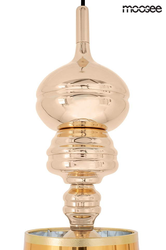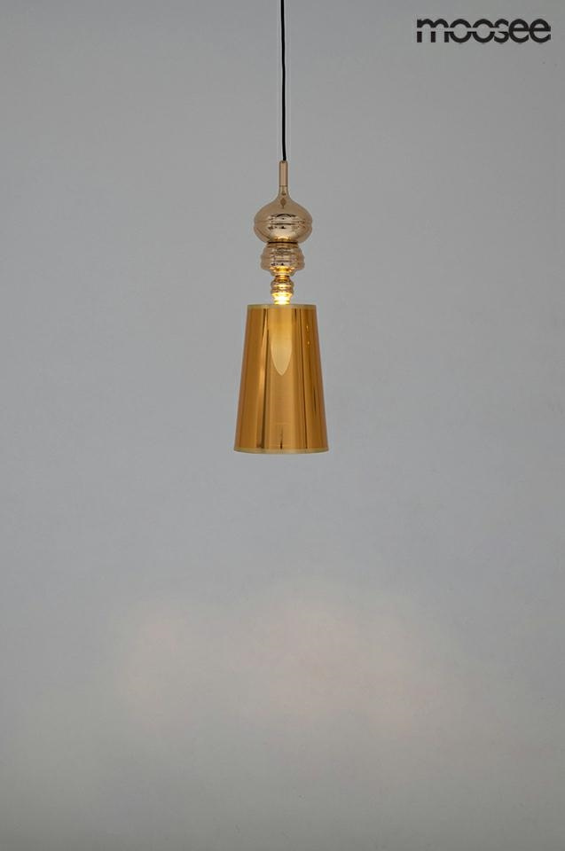 - MOOSEE lampa wisząca QUEEN 20 złota. Nowoczesna, a zarazem minimalistyczna propozycja oświetlenia. Gładki abażur został wykonany z tworzywa sztucznego, a stelaż lampy uformowano z aluminium w lustrzanym połysku. Prostota designu powoduje, że sprawdzi się