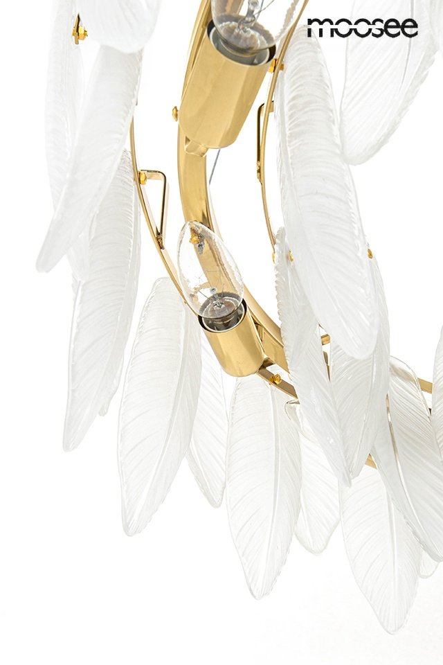 - MOOSEE lampa wisząca ROCH 100 złota. Niezwykle elegancka propozycja oświetlenia, które zachwyca swoim wyrafinowanym designem. Subtelnego uroku dodają mleczne szklane klosze przypominające liście. Całość umieszczono na eleganckim stelażu wykończonym w złot