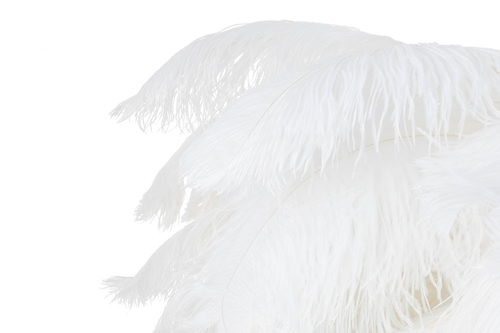 Klosz tworzy 80 sztuk gęsto ułożonych, naturalnych strusich piór o długości 55-60 cm, którymi możemy regulować wysokość