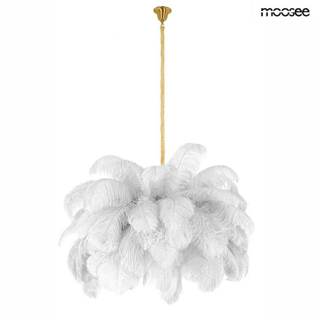 MOOSEE lampa wisząca TIFFANY 135 biała mosiądz / naturalne pióra