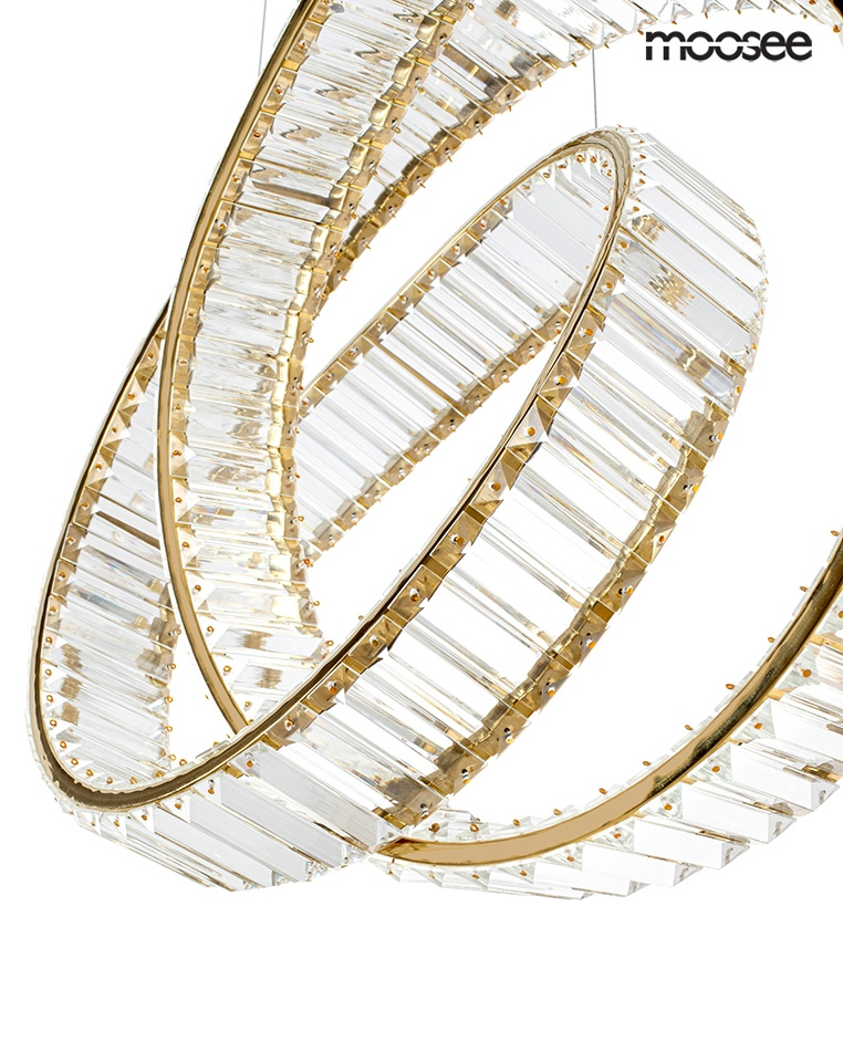 - MOOSEE lampa wisząca WAVE 120 złota. Piękna, efektowna oprawa, która będzie również pełniła funkcję dekoracji w Twoim wnętrzu. Ciekawy, nowoczesny kształt został stworzony w wyniku połączenia stali oraz kryształów. Światło przenika przez kryształy, tworzą